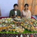 తణుకుకు చెందిన తుమ్మలపల్లి సుబ్రహ్మణ్యం అన్నపూర్ణ దంపతుల కుమారుడు సాయికృష్ణకు.. పశ్చిమ గోదావరి జిల్లా భీమవరానికి చెందిన అత్యం వెంకటేశ్వరావు మాదవిల కుమార్తె కుందవికి వివాహం నిశ్చయమైంది. కాబోయే నూతన వధూవరులకు 365 రకాల వంటలను రుచి చూపించారు.