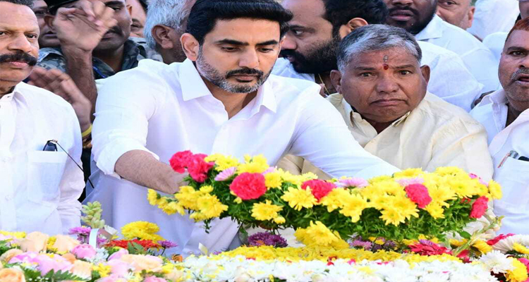 తెలుగు జాతి ఆత్మగౌరవ పతాకం, విశ్వవిఖ్యాత నటసార్వభౌముడు, మహా నాయకుడు ఎన్టీఆర్ గారి వర్ధంతి సందర్భంగా ఆంధ్రప్రదేశ్ ఐటి మంత్రి నారా లోకేష్ ఘన నివాళులు అర్పించారు.తారక రాముడు పోషించిన పౌరాణిక పాత్రల ఫోటోలను ఇళ్లలో పెట్టుకొని ప్రజలు దేవుడిగా పూజిస్తుండడం ఎన్టీఆర్ గారికి మాత్రమే దక్కిన అరుదైన వరం. మీరు భౌతికంగా దూరమై ఇన్నేళ్లయినా, తెలుగువారి హృదయాల్లో సజీవంగా ఉన్న తాతయ్యా.. మీ జన్మ ధన్యమయ్యా అని స్మరించుకున్నారు.
