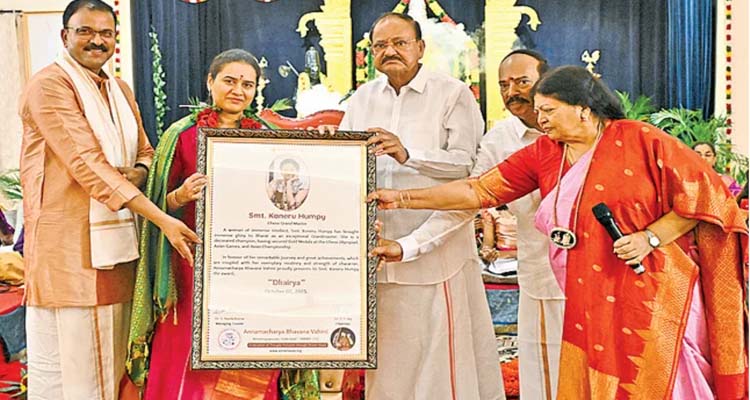 మానవ జీవితంలోని అన్ని సమస్యలకు పరిష్కారాన్ని చూపే అన్నమయ్య సంకీర్తలను పాఠ్యాంశాల్లోనూ చేర్చాల్సిన అవసరం ఉందని మాజీ ఉపరాష్ట్రపతి వెంకయ్యనాయుడు అన్నారు. ఈ విషయాన్ని తెలుగు రాష్ట్రాల ప్రభుత్వాల దృష్టికి సైతం తీసుకెళుతానని చెప్పారు. హైదరాబాద్లోని మాదాపూర్ అన్నమయ్య పురం అన్నచార్య భావనా వాహినిలో నాదబ్రహ్మోత్సవ్` 2025 కార్యక్రమం నిర్వహించారు. ఈ సందర్భంగా వెంకయ్యనాయుడు మాట్లాడుతూ నేటితరం వస్త్రధారణతోపాటు పిల్లల పేర్లు, సినిమాలు స్ఫూర్తి నింపేలా ఉండాలని సూచించారు. సీబీఐ మాజీ జాయింట్ డైరెక్టర్ లక్ష్మీనారాయణ మాట్లాడుతూ లక్ష్యం సాధించేందుకు ప్రణాళికతోపాటు ఆచరణ కూడా ముఖ్యమని తెలిపారు. తల్లిదండ్రులు గర్వపడేలా పిల్లలు ఎదగాలని, తాము చదువుకున్న విద్యాలయాలకు ముఖ్య అతిథిగా వెళ్లే స్థాయికి వారు చేరుకోవాలని సూచించారు. అనంతరం చదరంగం క్రీడాకారిణి కోనేరు హంపికి ధైర్య పురస్కారాన్ని ప్రధానం చేశారు. అన్నమాచార్య భావనా వాహిని మేనేజింగ్ ట్రస్ట్ నందకుమార్ పాల్గొన్నారు.