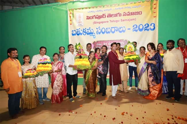 సింగపూర్ తెలుగు సమాజం ఆధ్వర్యంలో స్థానిక టాంపినీస్ సెంట్రల్ పార్కులో బతుకమ్మ వేడుకలను అత్యంత కన్నుల పండువగా నిర్వహించారు. ఈ వేడుకులకు సింగపూర్లోని వివిధ ప్రాంతాల నుంచి మహిళలు, పిల్లలు, పెద్దలు అంతా హాజరై జయప్రదం చేశారు. ఆడపడుచు లంతా బతుకమ్మ ఆటలాడి అలరించారు. చిన్నారులు స్వేచ్ఛగా ఆడుతూ పాడుతూ, గంతులేస్తూ బతుకమ్మ సంబరాలను ఎంజాయ్ చేశారు. సింగపూర్ వాసులు కూడా ఈ వేడుకలను ఆసక్తిగా తిలకించారు. బతుకమ్మ పండుగ విశిష్టతను అడిగి తెలుసుకున్నారు.