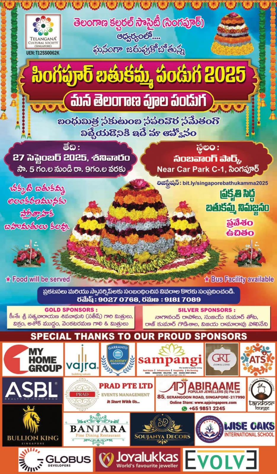 తెలంగాణ కల్చరల్ సొసైటీ (సింగపూర్) ఆధ్వర్యంలో బతుకమ్మ పండుగ 2025