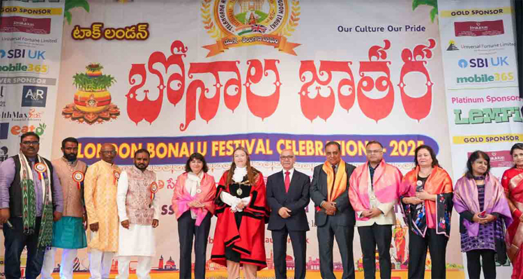 తెలంగాణ అసోసియేన్ ఆఫ్ యునైటెడ్ కింగ్డమ్ (టాక్) ఆధ్వర్యంలో లండన్లో బోనాల జాతర వైభవంగా నిర్వహించారు. యూకే దేశంలోని నలు మూలల నుంచి సుమారు 2,000లకు పైగా ప్రవాస కుటుంబ సభ్యులు ఈ బోనాల మహోత్సవానికి హాజరయ్యారు. ఈ సందర్భంగా టాక్ వ్యవస్థాపక అధ్యక్షుడు అనిల్ కూర్మాచలం మాట్లాడుతూ ప్రపంచవ్యాప్తంగా ప్రవాస తెలంగాణ సంఘాలు ఏర్పడి తెలంగాణ సంస్కృతిని విశ్వవ్యాప్తం చేసేందుకు కృషి చేస్తున్నాయని అన్నారు. అందుకు తెలంగాణ ప్రత్యేక రాష్ట్రంగా ఏర్పాటు కావడమే కారణమని ఆయన స్పష్టం చేశారు. స్వరాష్ట్ర కలను సాకారం చేసిన తొలి సీఎం కేసీఆర్ను మనం ఎల్లవేళలా కొలుచుకోవాలని ఆయన పిలుపునిచ్చారు. బోనాల వేడుక ఏర్పాట్లు ఎంతో గొప్పగా ఉన్నాయని నిర్వాహకులను కూర్మాచలం అభినందించారు. మన రాష్ట్ర పండగని మరింత వైభవోపేతంగా తెలంగాణలో నిర్వహించాలని ఈ సందర్భంగా ఆయన తెలంగాణ ప్రభుత్వానికి విజ్ఞప్తి చేశారు. అనంతరం పలువురు మాట్లాడుతూ బోనాల పండగ ప్రాధాన్యతల గురించి వివరించారు.