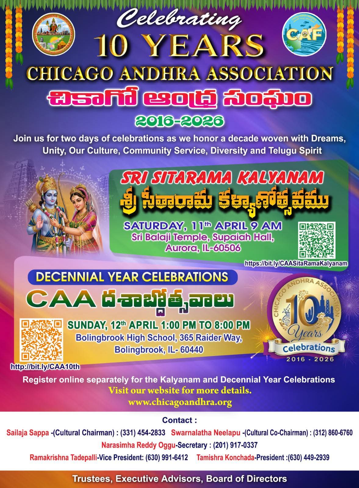 Chicago Andhra Association (CAA), Sri SitaRama Kalyanam and CAA Decennial Celebrations
