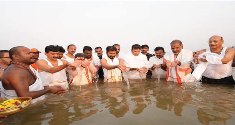 ముఖ్యమంత్రి  కాళేశ్వరం చేరుకున్న సందర్భంగా మంత్రి దుద్దిళ్ల శ్రీధర్ బాబు , కొండా సురేఖ , పొంగులేటి శ్రీనివాసరెడ్డి అంగరంగ వైభవంగా ప్రారంభమైన పవిత్ర సరస్వతి మహా పుష్కరాల్లో ముఖ్యమంత్రి శ్రీ రేవంత్ రెడ్డి పాల్గొన్నారు. తొలుత పుష్కర ఘాట్ వద్ద వేద మంత్రోచ్ఛారణల మధ్య శ్రీ సరస్వతీ దేవి వారి ఏకశిలా విగ్రహాన్ని ముఖ్యమంత్రి  ఆవిష్కరించారు. త్రివేణి సంగమం వద్ద పవిత్ర పుణ్య స్నానం ఆచరించారు.