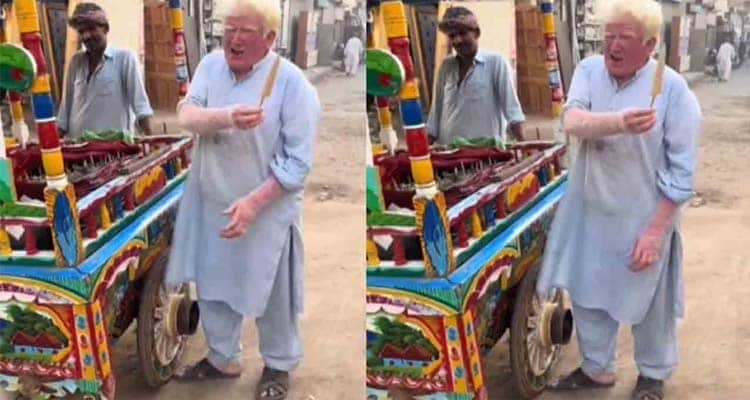 అమెరికా మాజీ అధ్యక్షుడు డొనాల్డ్ ట్రంప్ను పోలిన ఒక వ్యక్తి పాకిస్థాన్లో ఉన్నాడు. అతడు ఎంచక్కా పాటలు పాడుతూ కుల్ఫీ అమ్ముతున్నాడు. పాకిస్థాన్ పంజాబ్లోని సాహివాల్ జిల్లాకు చెందిన కుల్ఫీలు అమ్మే వ్యక్తికి అమెరికా మాజీ అధ్యక్షుడు డోనాల్డ్ ట్రంప్ ముఖ పోలికలు ఉన్నాయి. స్థానికులు అతడ్ని చాచా బగ్గా అని పిలుస్తారు. ప్రముఖ గాయకుడి మాదిరిగా అతడు పాటలు పాడుతుంటాడు. ఆయే కుల్ఫీ కుల్ఫీ ఆ ఖోవో కుల్ఫీ, కుల్ఫీ, కుల్ఫీ అంటూ పాటలు పాడతాడు. కుల్ఫీ అమ్మేందుకు ఆ వీధుల్లోకి తాను వచ్చినట్లు తన పాటల ద్వారా స్థానికులకు తెలియజేస్తుంటాడు. కాగా, 2021లో కూడా పాకిస్థాన్కు చెందిన ఈ కుల్ఫీ విక్రేత ఇంటర్నెట్లో హల్చల్ చేశాడు. డొనాల్డ్ ట్రంప్ మాదిరి పోలికలున్న అతడు పాటలు పాడుతూ తన ఐస్ క్రీం బండి ద్వారా కుల్ఫీలు అమ్ముతున్న వీడియో క్లిప్ నాడు కూడా సోషల్ మీడియాలో వైరల్ అయ్యింది. ఇది నెటిజన్లను షాక్ చేయడంతోపాటు ఎంతో ఆకట్టుకున్నది.
