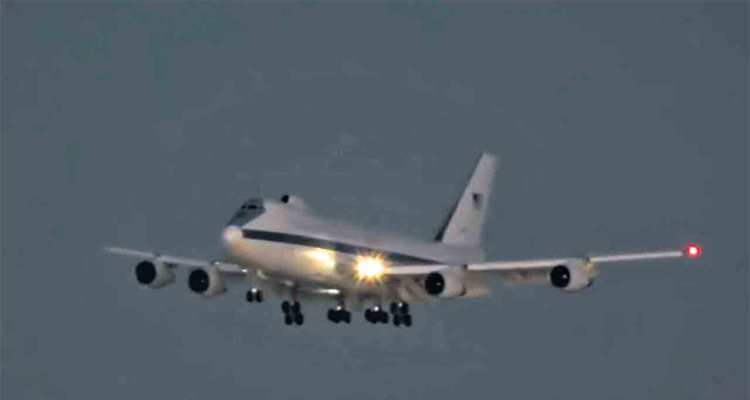 ప్రపంచంలో భౌగోళిక, రాజకీయ ఉద్రిక్తతల నడుమ బోయింగ్‌ ఈ-4బీ నైట్‌వాచ్‌ విమానం 51 ఏండ్లలో తొలిసారి కనిపించింది. దీనిని డూమ్స్‌డే ప్లేన్‌ అని, ఫ్లయింగ్‌ పెంటగాన్‌ అని కూడా పిలుస్తారు. ఈ విమానం లాస్‌ ఏంజెల్స్‌ విమానాశ్రయంలో కనిపించింది. అమెరికా రక్షణ మంత్రి పీట్‌ హెగ్‌సెత్‌ దీనిలో ఉన్నారు. ఈ వార్తలపై పెంటగాన్‌, వైట్‌ హౌస్‌ స్పందించలేదు. అయితే, ఫ్లైట్‌ ట్రాకర్స్‌ విశ్లేషణ ప్రకారం, దీని రాక వెనుక ప్రత్యేకంగా వైట్‌ హౌస్‌ నుంచి అలెర్ట్‌ సందేశం ఏమీ లేదని తెలుస్తున్నది. ఈ విమానాన్ని ప్రచ్ఛన్న యుద్ధం సమయంలో అత్యాధునికంగా తయారు చేశారు. ఇది ప్రస్తుతం నేషనల్‌ ఎయిర్‌బోర్న్‌ ఆపరేషన్స్‌ సెంటర్‌గా పని చేస్తున్నది.