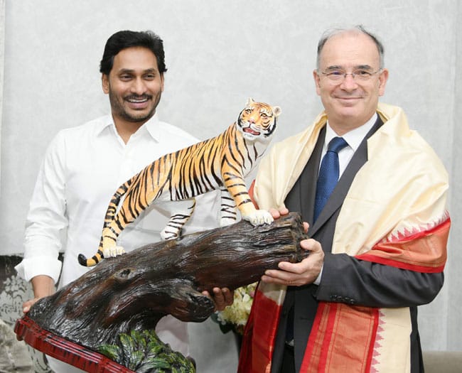 ఆంధ్రప్రదేశ్ ముఖ్యమంత్రి వైఎస్ జగన్ మోహన్ రెడ్డితో ఫ్రాన్స్ కాన్సుల్ జనరల్ (బెంగళూరు) థియర్ బెర్జెలాట్ తాడేపల్లి లోని ముఖ్యమంత్రి క్యాంపు కార్యాలయంలో సమావేశమాయ్యారు.