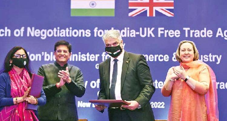 భారత్, బ్రిటన్ మధ్య ప్రతిపాదిత స్వేచ్ఛా వాణిజ్య ఒప్పందం (ఎఫ్టీఏ) చర్చలు లాంఛనంగా ప్రారంభమయ్యాయి. కేంద్ర వాణిజ్య పరిశ్రమల మంత్రి పియుష్ గోయల్, బ్రిటన్ అంతర్జాతీయ వాణిజ్య శాఖ మంత్రి యానీమేరీ ట్రెవిల్యాన్ ప్రారంభించారు. రెండు పక్షాలు వ్యాపార అవకాశాలు అందిపుచ్చుకునేందుకు, భారత్, బ్రిటన్ మధ్య వస్తు, సేవల లావాదేవీల పరిమాణాన్ని పెంచుకునేందుకు తొడ్పడేలా వీలైనంత త్వరగా ఒప్పందం కుదిరేలా ఇరు దేశాల బృందాలు క్రియాశీలకంగా వ్యవహరించగలవని ఆశిస్తున్నట్లు గోయల్ తెలిపారు.