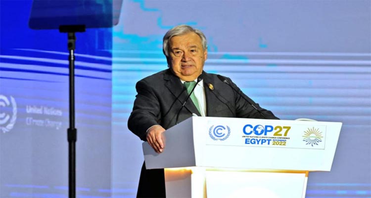 ప్రపంచ దేశాలన్నీ పరస్పరం సహకరించుకోకపోఏ వినాశనం తప్పదని ఐక్యరాజ్యసమితి సెక్రెటరీ జనరల్‌ ఆంటోనియో గుటేరస్‌ హెచ్చరించారు. ఈజిప్ట్‌లోని షెర్మ్‌ ఎల్‌ షేక్‌లో కాప్‌`27 సదస్సులో వివిధ దేశాల నేతలు, ప్రతినిధులను ఉద్దేశించి గుటేరస్‌ ప్రసంగించారు.  నరక కూపం దిశగా పయనం సాగుతోందని ఆందోళన వ్యక్తం చేశారు. వాతావరణ మార్పులను నియంత్రించకపోతే ఊహించని ఉత్పాతాలు తప్పవని పేర్కొన్నారు. కాలుష్య ఉద్గారాల విషయంలో అతిపెద్ద దేశాలైన చైనా, అమెరికా ఇకనైనా కళ్లు తెరవాలని, రాబోయే దుష్పరిణామాలను నివారించడానికి కలిసికట్టుగా పనిచేయాలని అన్నారు. భూతాపం ఆందోళనకర స్థాయిలో పెరుగుతోందని తెలిపారు. పెరుగుతున్న ఉష్ణోగ్రతలతో వాతావరణంలో అనూహ్య మార్పులు కనిపిస్తున్నాయని, కరువులు, వరదలు మానవాళికి పెనుసవాళ్లు విసురుతున్నాయని గుర్తు చేశారు. కర్బన ఉద్గారాలను తగ్గించుకొనేలా ధనిక, పేద దేశాలు ఒక కొత్త ఒప్పందం కుదుర్చుకోవాలని తెలిపారు. ధనిక దేశాలు 2030 నాటికి, ఇతర దేశాలకు 2040 నాటికి బొగ్గు వాడకాన్ని పూర్తిగా నిలిపివేయాలని కోరారు.