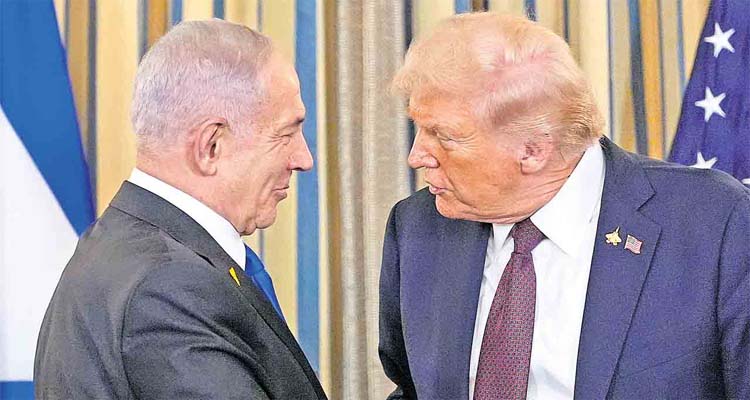 అమెరికా అధ్యక్షుడు డొనాల్డ్‌ ట్రంప్‌తో వాషింగ్టన్‌ డీసీలో చర్చలు జరిపిన అనంతరం గాజాలో కాల్పుల విరమణకు ఇజ్రాయెల్‌ ప్రధాని బెంజమిన్‌ నెతన్యాహు అంగీకరించారు. చర్చల అనంతరం ఇద్దరు నేతలు సంయుక్త విలేకరుల సమావేశంలో మాట్లాడారు. పాలస్తీనాలో దీర్ఘకాలంగా సాగుతున్న యుద్ధానికి ముగింపు పలికే లక్ష్యంతో రూపొందించిన 20 సూత్రాల ప్రణాళికను వారు విడుదల చేశారు. కాల్పుల విరమణ విధివిధానాలను స్థూలంగా వివరించిన ట్రంప్‌ గాజాలో యుద్ధాన్ని నిలిపివేసేందుకు, బందీల విడుదలకు, తాత్కాలిక ప్రభుత్వ ఏర్పాటుకు దీన్ని రూపొందించినట్లు చెప్పారు.ఈ ప్రతిపాదనలకు హమాస్‌ అంగీకరించని పక్షంలో ఆ గ్రూపును పూర్తిగా నిర్మూలించేందుకు ఇజ్రాయెల్‌కు అమెరికా సంపూర్ణ సహకారం ఉంటుందని ట్రంప్‌ ప్రకటించారు.