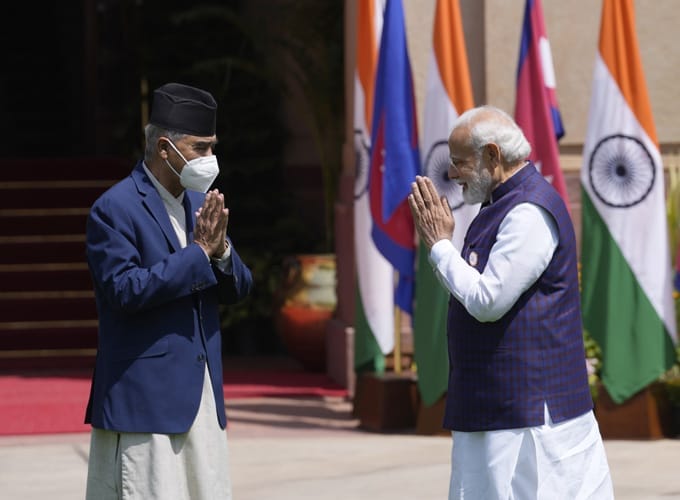 మూడు రోజు పర్యటన నిమిత్తం భారత్‌కు విచ్చేసిన నేపాల్‌ ప్రధాన మంత్రి షేర్‌ బహదూర్‌ దేవ్‌బాతో భారత ప్రధాని మోదీ భేటీ అయ్యారు.