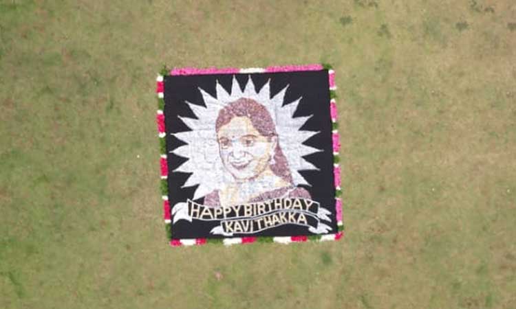 ఎమ్మెల్సీ కవితకు జన్మదిన శుభాకాంక్షలు తెలుపుతూ(మార్చి 13) నిజామాబాద్‌లోని భూమారెడ్డి కన్వెన్షన్‌ సెంటర్‌లో 18 వేల నాణేలతో 12 అడుగుల చిత్రం రూపొందించారు. ఆ చిత్రంపై హ్యాపీ బర్త్‌డే కవితక్క అని రాశారు.