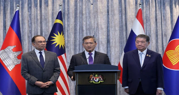 తక్షణమే బేషరతుగా సరిహద్దు ఘర్షణలను నిలిపివేయాలని థాయ్‌లాండ్, కంబోడియాలు కీలక నిర్ణయానికి వచ్చాయి. మలేసియా మధ్యవర్తిత్వంతో ఇరు పక్షాల నేతల మధ్య పుత్రజయ్‌లో సమావేశం జరిగింది. కాల్పుల, ఘర్షణల విరమణకు ఇరుదేశాల అంగీకారంతో ఇన్ని రోజులుగా సాగుతున్న భీకర పరస్పర కాల్పులకు తెరపడనుంది. అమెరికా అధ్యక్షులు ట్రంప్ ఇక్కడి ఘర్షణపై తీవ్రంగా స్పందించారు. అవసరం అయితే తాను జోక్యం చేసుకోవాల్సి ఉంటుందని హెచ్చరించారు.