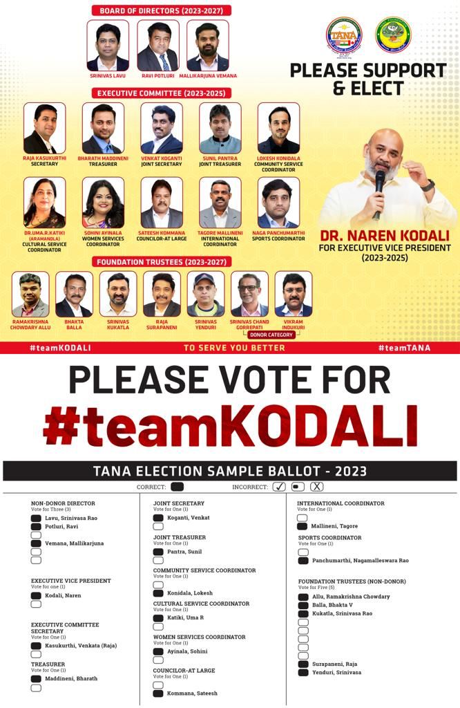 వ్యక్తుల ప్రయోజనాలు కన్నా సంస్థ ప్రయోజనాలు ముఖ్యం అని భావించే అంజయ్య చౌదరి లావు గారు దానికనుగుణంగా పనిచేసే వారికి మద్దతు తెలపవలసిన అవసరం ఎంతైనా వుంది అని ఒక ప్రకటనలో తెలిపారు. ప్రతిష్టాకరమైన తానా సంస్థ మరింత ముందుకు తీసుకు వెళ్లి అమెరికా, కెనడా మరియు ఇండియా లో తెలుగు వారికి మరింత సేవలు అందించటానికి నరేన్ కొడాలి ప్యానెల్ ని అత్యంత మెజారిటీ తో గెలిపించవలసింది గా అభ్యర్థిస్తూ పిలుపునిచ్చారు .