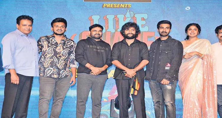 సంతోష్శోభన్, ఫరియా అబ్దుల్లా జంటగా నటించిన చిత్రం ‘లైక్ షేర్ సబ్స్ర్కైబ్’ . ఈ చిత్రానికి మేర్లపాక గాంధీ దర్శకత్వం వహించారు. వెంకట్ బోయనపల్లి నిర్మాత. నవంబర్ 4న ప్రేక్షకుల ముందుకురానుంది. హైదరాబాద్లో జరిగిన ‘ ప్రీరిలీజ్ వేడుకకు నాని ముఖ్యఅతిథిగా హాజరయ్యారు. ఈ సందర్భంగా నాని మాట్లాడుతూ “గోల్కొండ హైస్కూల్’ చిత్రంలో సంతోష్శోభన్ నటన చూసి ఎంతో ఇంప్రెస్ అయ్యా. మేమిద్దరం దర్శకుడు ఇంద్రగంటి స్కూల్ నుంచే వచ్చాం. సంతోష్ వరుసగా సినిమాలు చేయడం ఆనందంగా ఉంది. ఆయనకు మంచి విజయాలు దక్కాలని కోరుకుంటున్నా’ అన్నారు. సంతోష్శోభన్ మాట్లాడుతూ ఇండస్ట్రీకి వచ్చిన తర్వాత నాకు మొదట సలహా ఇచ్చింది నానిగారు, నీలో నన్ను చూసుకున్నాను అని అన్నారు. ఇప్పటివరకు నేను అందుకున్న బెస్ట్ కాంప్లిమెంట్ అదే. నానిగారి నుంచి చాలా నేర్చుకున్నా. ఆయనలాగే సంభాషణలు ప్రాక్టీస్ చేస్తుంటా’ అని చెప్పారు. తన కెరీర్లో ఇదొక ప్రత్యేకమైన చిత్రమని, దర్శకుడు మేర్లపాక గాంధీ కామెడీ టైమింగ్ ప్రతి ఒక్కరికి నచ్చుతుందని కథానాయిక ఫరియా అబ్దుల్లా చెప్పింది. ఆద్యంతం వినోదం, సస్పెన్స్తో ఆకట్టుకునే చిత్రమిదని దర్శకుడు తెలిపారు. తమ బ్యానర్లో మంచి సినిమాగా నిలిచిపోతుందనే నమ్మకం ఉందని నిర్మాత వెంకట్ బోయనపల్లి పేర్కొన్నారు. ఈ కార్యక్రమంలో నందిని రెడ్డి, ఫిరియా, ప్రవీణ్ లక్క రాజు, బ్రహ్మాజీ, సుదర్శన్ తదితరులు పాల్గొన్నారు.