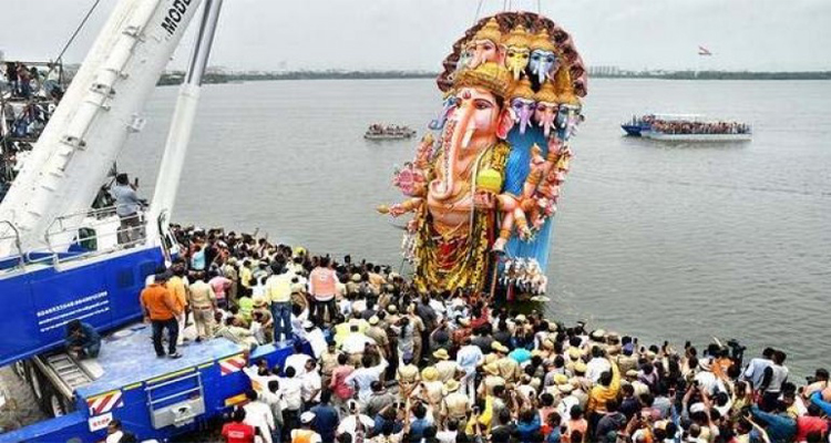 హైదరాబాద్లో గణేష్ మహా శోభాయాత్ర కన్నులపండువగా సాగింది. దీంతో ట్యాంక్బండ్పై సందడి మొదలైపోయింది. 9రోజులపాటు భక్తుల పూజలందుకున్న ఖైరతాబాద్ గణనాథుడి గంగమ్మ ఒడికి చేరాడు. హస్సేన్ సాగర్ వద్ద ఏర్పాటు చేసిన నాలుగో నెంబర్ భారీ క్రేన్ సాయంతో నిమజ్జనం కార్యక్రమం పూర్తి చేశారు. ఖైరతాబాద్ గణనాథుడి శోభాయాత్రకు చిన్నాపెద్ద తేడా లేకుండా, లక్షలాది మంది భక్తులు హాజరయ్యారు. గణపతిబప్ప మోరియా.. ఖైరతాబాద్ గణేష్కు జై అంటూ డ్యాన్సులు వేస్తూ గణనాథుడ్ని సాగనంపారు. ఎటు చూసినా జనసంద్రమే, ఇసుకేస్తే రాలనంత జనంతో ట్యాంక్ బండ్ పరిసరాలు కిటకిటలాడాయి. ఖైరతాబాద్ గణేశ్ ఎదుట భక్తులతో పాటు.. పోలీసులు కూడా డ్యాన్స్ వేసి అందరినీ ఆకట్టుకున్నారు. శ్రీ దశమహా విద్యాగణపతిగా కొలువైన ఖైరతాబాద్ గణేశుడి శోభాయత్ర టెలిఫోన్ భవన్, సచివాలయం మీదుగా శోభాయాత్ర కొనసాగింది.
