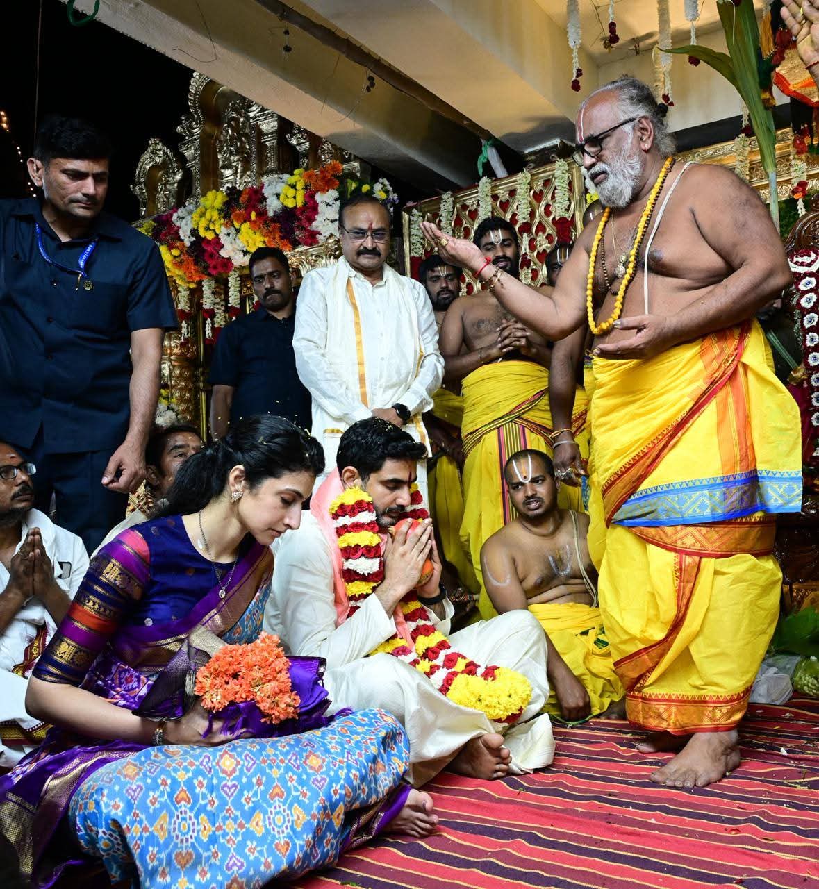 ఆంధ్రప్రదేశ్ మంగళగిరిలోని శ్రీ లక్ష్మీ నరసింహస్వామి వారి బ్రహ్మోత్సవాలు అత్యంత వైభవంగా జరుగుతున్నాయి. వార్షిక బ్రహ్మోత్సవాల్లో భాగంగా సోమవారం రాత్రి 12 గం.లకు దేవస్థానం ఉత్సవ ప్రాంగణంలో నిర్వహించిన శ్రీవారి కళ్యాణ మహోత్సవంలో విద్య, ఐటీ శాఖల మంత్రి నారా లోకేష్, బ్రాహ్మణి దంపతులు పాల్గొన్నారు. ఈ సందర్భంగా శ్రీ లక్ష్మీ నరసింహస్వామి వారికి ప్రభుత్వం తరపున నారా లోకేష్ దంపతులు పట్టువస్త్రాలు సమర్పించారు. అనంతరం వేద మంత్రోచ్ఛారణలు, మంగళవాయిద్యాల మధ్య స్వామి వారి కళ్యాణాన్ని తిలకించి ప్రత్యేక ఆశీర్వచనాలు పొందారు. అంతకుముందు దేవాలయ ప్రాంగణానికి చేరుకున్న విద్య, ఐటీ శాఖల మంత్రి నారా లోకేష్, నారా బ్రాహ్మణి దంపతులకు ఆలయ అధికారులు, ధర్మకర్తల మండలి సభ్యులు, స్థానిక నాయకులు ఘనస్వాగతం పలికారు. స్వామి వారి దివ్య కళ్యాణాన్ని తిలకించేందుకు భక్తులు పెద్దఎత్తున తరలివచ్చారు. ఈ కార్యక్రమంలో పద్మశాలీ వెల్ఫేర్ అండ్ డెవలప్ మెంట్ కార్పోరేషన్ ఛైర్మన్ నందం అబద్దయ్య, ఏపీఎంఎస్ఐడీసీ ఛైర్మన్ చిల్లపల్లి శ్రీనివాసరావు, టీటీడీ బోర్డు సభ్యురాలు తమ్మిశెట్టి జానకీదేవి తదితరులు పాల్గొన్నారు.