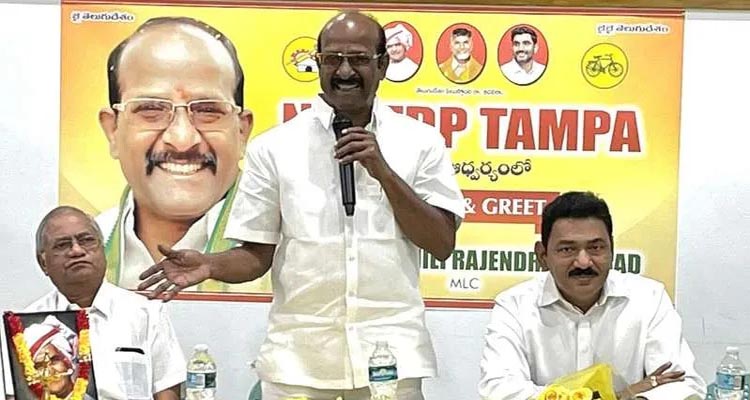 అమెరికాలోని ఫ్లోరిడా రాష్ట్రంలోగల టాంపా నగరంలో NRI టీడీపీ శాఖ ఆధ్వర్యంలో అక్టోబర్ 30న జరిగిన మీట్ అండ్ గ్రీట్ సభకు టీడీపీ రాష్ట్ర ఉపాధ్యక్షులు వై.వి.బి. రాజేంద్ర ప్రసాద్, టీడీపీ సీనియర్ నాయకులు ఏ.వీ. రమణ ముఖ్య అతిథిగా హాజరయ్యారు. ఈ సందర్భంగా ఏ.వీ. రమణ మాట్లాడుతూ జగన్ రెడ్డి తన సైకో మనస్తత్వంతో కుల, మత, ప్రాంత విద్వేషాలను రెచ్చగొడుతూ, రాష్ట్రంలో అన్ని వర్గాల ప్రజలను భయపెడుతూ రాక్షసానందం పొందుతున్నారని అన్నారు. రాజేంద్ర ప్రసాద్ మాట్లాడుతూ టీడీపీ అధినేత చంద్రబాబు ముఖ్యమంత్రిగా ఉన్నప్పుడు రాష్ట్రం అన్ని రంగాలలో అభివృద్ధి చెంది ఆంధ్రప్రదేశ్ అంటే అభివృద్ధి ప్రదేశ్గా ఉండేదని, జగన్ రెడ్డి అధికారంలోకి వచ్చాక అరాచకం,అవినీతి, అక్రమాలకు చిరునామాగా మారిపోయిందని అన్నారు. అన్ని వ్యవస్థలను భ్రష్టు పట్టించారని ఆగ్రహం వ్యక్తం చేశారు. మళ్ళీ ఆంధ్రప్రదేశ్ రాష్ట్రానికి పూర్వ వైభవం రావాలన్నా, రాష్ట్రం అభివృద్ధి చెంది ప్రజలు సుభిక్షంగా ఉండాలన్నా టీడీపీ చీఫ్ చంద్రబాబు నాయుడు నాయకత్వమోక్కటే మార్గమని అన్నారు. అందుకనే నాయకులందరూ చంద్రబాబును ముఖ్యమంత్రిగా చేయడమే ఏకైక లక్ష్యంగా కష్టపడి పనిచేయాలని పిలుపునిచ్చారు.
