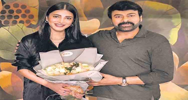 మెగాస్టార్ చిరంజీవి నటిస్తున్న కొత్త చిత్రంలో శ్రుతి హాసన్ నాయికగా ఎంపికయ్యారు. కె.ఎస్.రవీంద్రనాథ్ (బాబీ) ఈ చిత్రాన్ని రూపొందిస్తున్నారు. ఇది చిరంజీవి నటిస్తున్న 154వ చిత్రం. పోర్ట్ ఏరియా నేపథ్యంతో తెరకెక్కనుంది. దేవిశ్రీప్రసాద్ సంగీతాన్ని అందిస్తున్నారు. మైత్రీ మూవీ మేకర్స్ సంస్థ నిర్మిస్తున్నది. నవీన్ యెర్నేని, వై.రవిశంకర్ నిర్మిస్తున్నారు. శృతిహాసన్కు ఫ్లవర్ బొకే అందిస్తున్న చిరంజీవి ఆ ఫోటోను సోషల్ మీడియా ద్వారా పంచుకున్నారు. మహిళా దినోత్సవం సందర్భంగా మా చిత్రబృందంలోకి నిన్ను ఆహ్వానించడం సంతోషంగా ఉంది. సినిమాకు నువు మహిళాశక్తిని తీసుకొస్తావని ఆశిస్తున్నాం అంటూ ట్వీట్లో పేర్కొన్నారు.