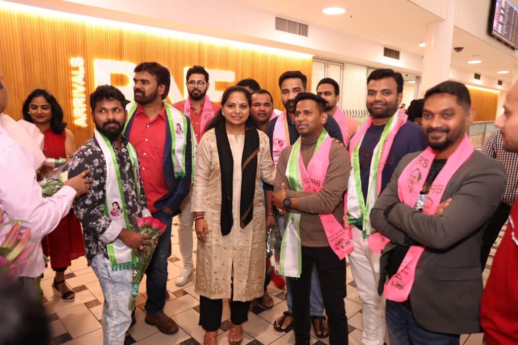 భారత జాగృతి ఆధ్వర్యంలో జరిగే బోనాలు పండుగ వేడుకల్లో పాల్గొనేందుకు ఎమ్మెల్సీ కల్వకుంట్ల కవిత ఆస్ట్రేలియా చేరుకున్నారు. బ్రిస్బేన్ నగరం లో ఎమ్మెల్సీ కవితకు భారత జాగృతి ఆస్ట్రేలియా విభాగం నాయకులు ఘన స్వాగతం పలికారు. తెలంగాణ జాగృతి ఆస్ట్రేలియా విభాగం అధ్యక్షులు శ్రీకర్ రెడ్డి అందెం, బీఆర్ఎస్ ఆస్ట్రేలియా విభాగం అధ్యక్షులు కాసర్ల నాగేందర్ రెడ్డి, బీటీఏ ప్రెసిడెంట్ కిషోర్, నాయకులు విజయ్ కోరబోయిన, స్వప్న దోమ, విరించి రెడ్డి, ఇతర నాయకులు ఎమ్మెల్సీ కవితకు స్వాగతం పలికారు. సిడ్నీ, మెల్బోర్న్ నగరాల నుండి బీఆర్ఎస్, తెలంగాణ జాగృతి నాయకులు వందల సంఖ్యలో తరలివచ్చి ఎమ్మెల్సీ కవితకు స్వాగతం పలికారు.