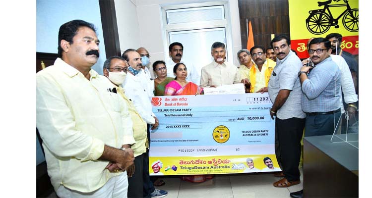 ఆంధ్రప్రదేశ్ రాష్ట్రంలోని మంగళగిరిలోని తెలుగుదేశం పార్టీ కేంద్ర కార్యాలయంపై వైసీపీ కార్యకర్తలు దాడి చేసిన విషయం తెలిసిందే. ఈ క్రమంలో ఆస్ట్రేలియాలోని మెల్బ్ర్న్, సిడ్నీ నగరాలకు చెందిన ఎన్నారై టీడీపీ ప్రతినిధులు కీలక నిర్ణయం తీసుకున్నారు. తెలుగుదేశం పార్టీ కార్యాలయానికి మరమ్మతులు చేయించేందుకు కావాల్సిన డబ్బుల కోసం విరాళాలు సేకరించారు. పర్వతనేని దేవేంద్ర, కోడూరి శ్యాం ప్రసాద్, అన్నే రామకృష్ణ, యడ్లపల్లి ధరణేష్ తదితరుల చొరవతో విరాళాల రూపంలో సుమారు రూ.7 లక్షలను సేకరించారు. అంతేకాకుండా ఆ మొత్తాన్ని పెనమలూరు నియోజకవర్గ తెలుగుదేశం పార్టీ ఇంఛార్జీ బోడె ప్రసాద్ ఆధ్వర్యంలో తెలుగుదేశం పార్టీ అధ్యక్షుడు, మాజీ ముఖ్యమంత్రి చంద్రబాబు నాయుడుకు అందజేశారు.
