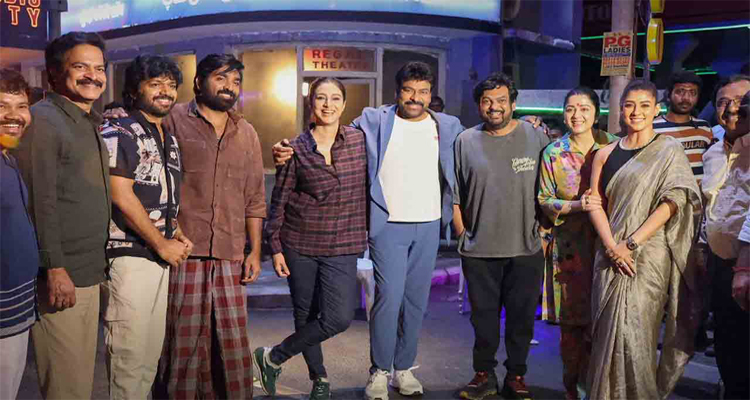 మెగాస్టార్ చిరంజీవి ప్రస్తుతం అనిల్ రావిపూడితో కలిసి మన శంకరవరప్రసాద్ గారు అనే సినిమాను తెరకెక్కిస్తున్నాడు. ఈ సినిమా షూటింగ్ ప్రస్తుతం హైదరాబాద్లో జరుగుతోంది. వీరి సెట్కి సమీపంలో విజయ్ సేతుపతి, పూరి జగన్నాథ్ కలిసి చేస్తున్న మూవీ షూటింగ్ జరుగుతోంది. ఇందులో టబు కీలక పాత్రలో నటిస్తున్నారు. పూరి సేతుపతి టీమ్ చిరుని కలుసుకుని ఆశీస్సులు తీసుకుంది. ఇందులో నటులు చిరంజీవితో పాటు విజయ్ సేతుపతి, టబు, నయనతార, ఛార్మీ తదితరులు ఉన్నారు.
