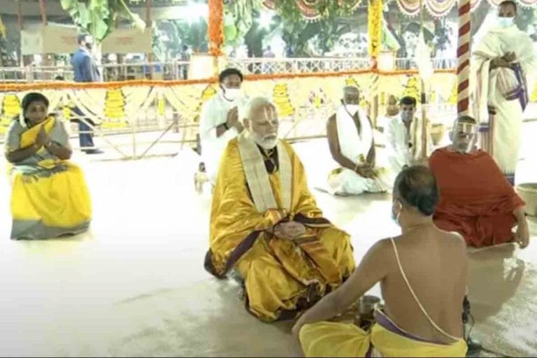 ముచ్చింతల్ యాగశాలలో నిర్వహించిన విష్వక్సేనేష్టి యాగంలో ప్రధాని మోదీ, గవర్నర్ తమిళిసై సౌందర్ రాజన్, కేంద్ర మంత్రి కిషన్ రెడ్డి, చిన్నజీయర్ స్వామి, జూపల్లి రామేశ్వర్ రావు పాల్గొన్నారు.