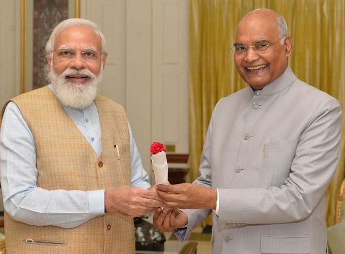 రాష్టపతి రామనాథ్ కోవింద్ జన్మదినం సందర్భంగా రాష్టపతి భవన్ లొ ప్రధాని మోడి ఒక పువ్వుతో శుభాకాంక్షలు తెలియజేశారు