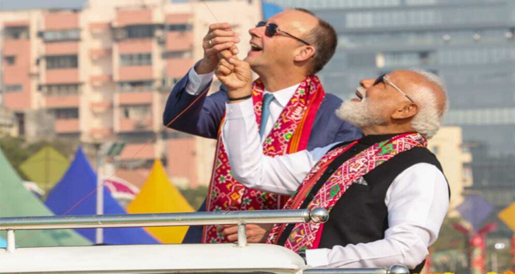 అహ్మదాబాద్ లో అంతర్జాతీయ కైట్ ఫెస్టివల్ ను ప్రారంభించారు. జర్మనీ ఛాన్స్ లర్ తో ఈ వేడుకల్లో పాల్గొన్నారు. గుజరాత్ పర్యటనలో ఉన్న మోది అహమ్మదాబాద్ లోని సబర్మతి నదీ తీరంలో జరుగుతున్న ఈ వేడుకల్లో పాల్గొన్నారు.ఈ ఉత్సవాల్లో సుమారు 50 దేశాల నుండి ఔత్సాహికులు పాల్గొన్నారు. ఇందులో ఆపరేషన్ సింధూర్, హనుమాన్ పతంగులు ఆకర్షణగా నిలిచాయి. గత ఏడాది 3 లక్షల మంది సందర్శకులు రాగా ఈ ఏడాది 5 లక్షల వరకు సందర్శకులు రావచ్చు అని ప్రభుత్వం అంచనా వేస్తోంది.దీని వల్ల పర్యాటకం కు ఊరట లభిస్తుందని గుజరాత్ ప్రభుత్వం పేర్కొంది.