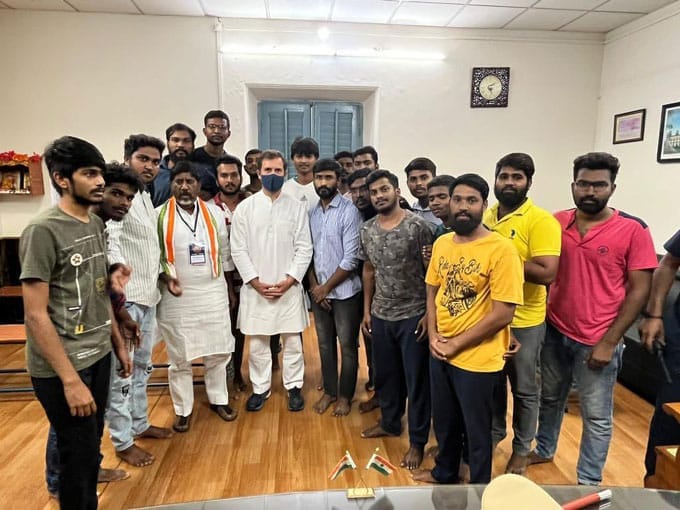ఉస్మానియా యూనివర్సిటీలో రాహుల్ సందర్శనకు అనుమతి నిరాకరించడాన్ని నిరసిస్తూ ఆందోళన చేపట్టిన ఎన్ఎస్యూఐ నాయకులు చంచల్గూడ జైలులో ఉన్న విషయం తెలిసిందే. వీరిని కాంగ్రెస్ అగ్రనేత రాహుల్ గాంధీ, భట్టి విక్రమార్క ములాఖత్లో కలిసి పరామర్శించారు.