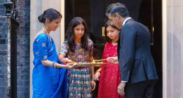 భారత మూలాలున్న బ్రిటన్ ప్రధాని రిషి సునాక్ సైతం దీపావళి పండుగను గ్రాండ్గా సెలబ్రేట్ చేసుకున్నారు. యూకేలోని తన అధికారిక నివాసం 10 డౌనింగ్ స్ట్రీట్ లో భార్య అక్షతా మూర్తి, ఇద్దరు కుమార్తెలతో కలిసి దీపాలు వెలిగించారు. పండుగ సందర్భంగా అక్షతా మూర్తి, ఇద్దరు కుమార్తెలు కృష్ణ, అనౌష్క సంప్రదాయ దుస్తుల్లో కనిపించారు. కుటుంబంతో కలిసి దీపావళి జరుపుకోవడం తనకు ఓ ప్రత్యేక క్షణం అని చెప్పారు. ఈ సందర్భంగా యూకే సహా ప్రపంచ వ్యాప్తంగా ప్రతి ఒక్కరికీ రిషి సునాక్ దీపావళి శుభాకాంక్షలు తెలిపారు.