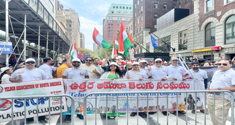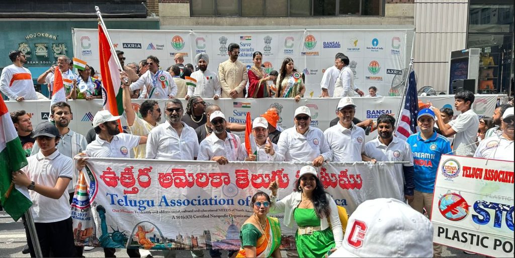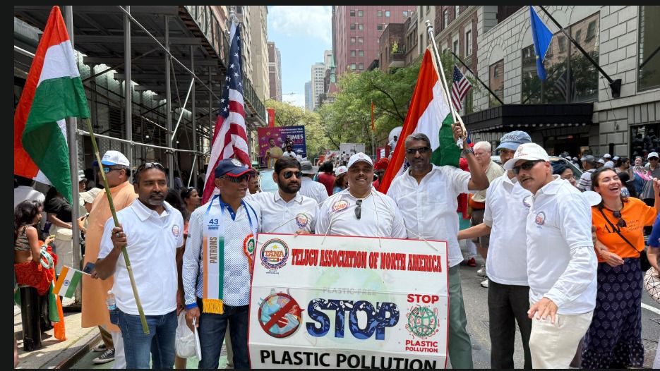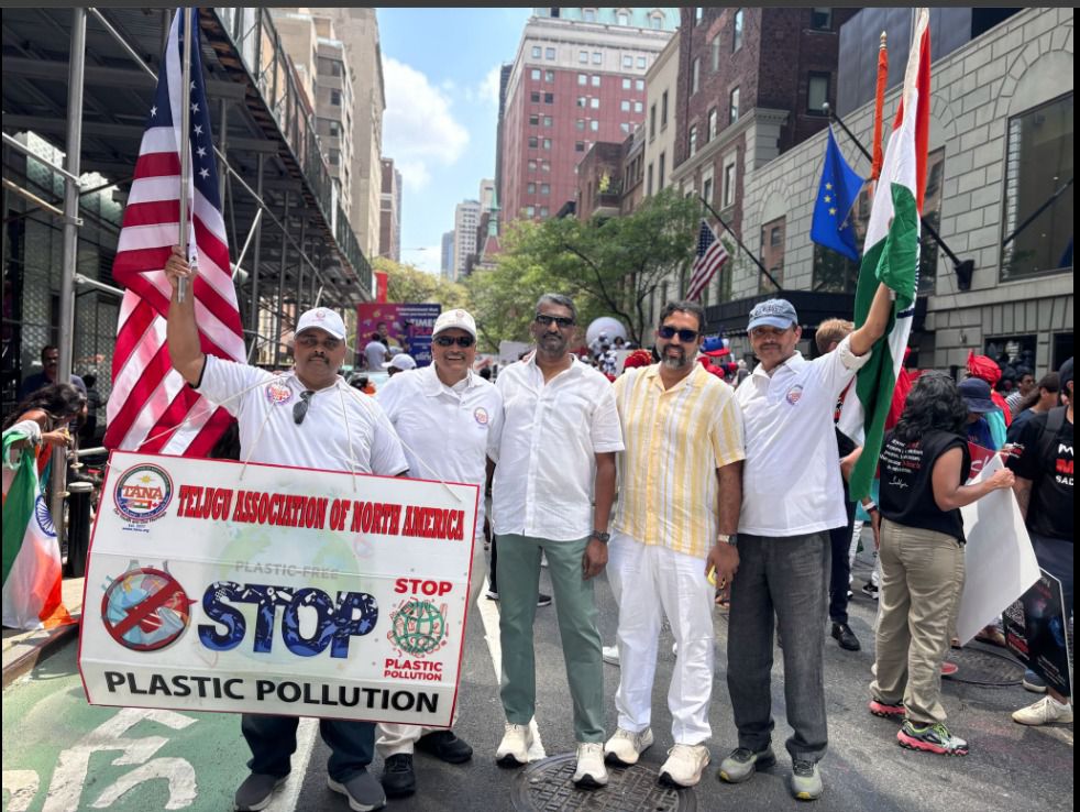 ప్రపంచములో అతి పెద్ద దయిన న్యూ యార్క్ ఇండియా పెరేడ్ వేడుకలో భాగంగా, తెలుగు అస్సోసియేషన్ అఫ్ నార్త్ అమెరికా ( TANA) పాల్గొంది , ఉత్తర అమెరికా తెలుగు సంఘం (TANA) సమాజానికి “జీరో ప్లాస్టిక్” సందేశాన్ని కనుబరిచింది సభ్యులు గర్వంగా మరియు ఉత్సాహంగా జెండాలను ఊపుతూ 85 డిగ్రీల వేడిలో రెండు మైళ్లదూరం నడిచారు. వాతావరణం వేడిగా ఉన్నప్పటికీ, ఎవరూ అలసట సంకేతాలను చూపించలేదు – వారి స్ఫూర్తి మరియు అంకితభావం సమాజం మరియు మాతృభూమి పట్ల వారి ప్రేమను ప్రతిబింబించాయ 50 వసంతాలు చేరు అవుతున్నఉత్తర అమెరికా తెలుగు సంఘం (TANA) ని చూడగానే జనసందోహం తమ ఆనందాన్ని అభివాదం తోటి చేతులు వూపుతూ కనుబరిచారు.