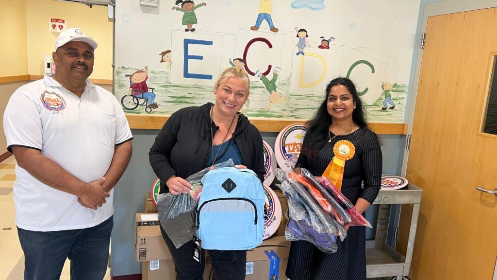 న్యూ ఇంగ్లాండ్లో ఆగస్టు 27వ తేదీన ఫ్రాంక్లిన్లోని ఆరు స్కూళ్లల్లో స్కూల్లోని పిల్లలకు స్కూల్ బ్యాగ్లను పంపిణీ చేశారు. ఈ బ్యాక్ ప్యాక్ కార్యక్రమం కింద దాదాపు 200కు పైగా బ్యాగ్లను పిల్లలకు అందజేశారు. ఇందులో క్రేయాన్స్, ఎరేజర్స్, పెన్సిల్, షార్పనర్స్, పెన్నులు తదితర వస్తువులను కూడా కలిపి అందజేశారు.
