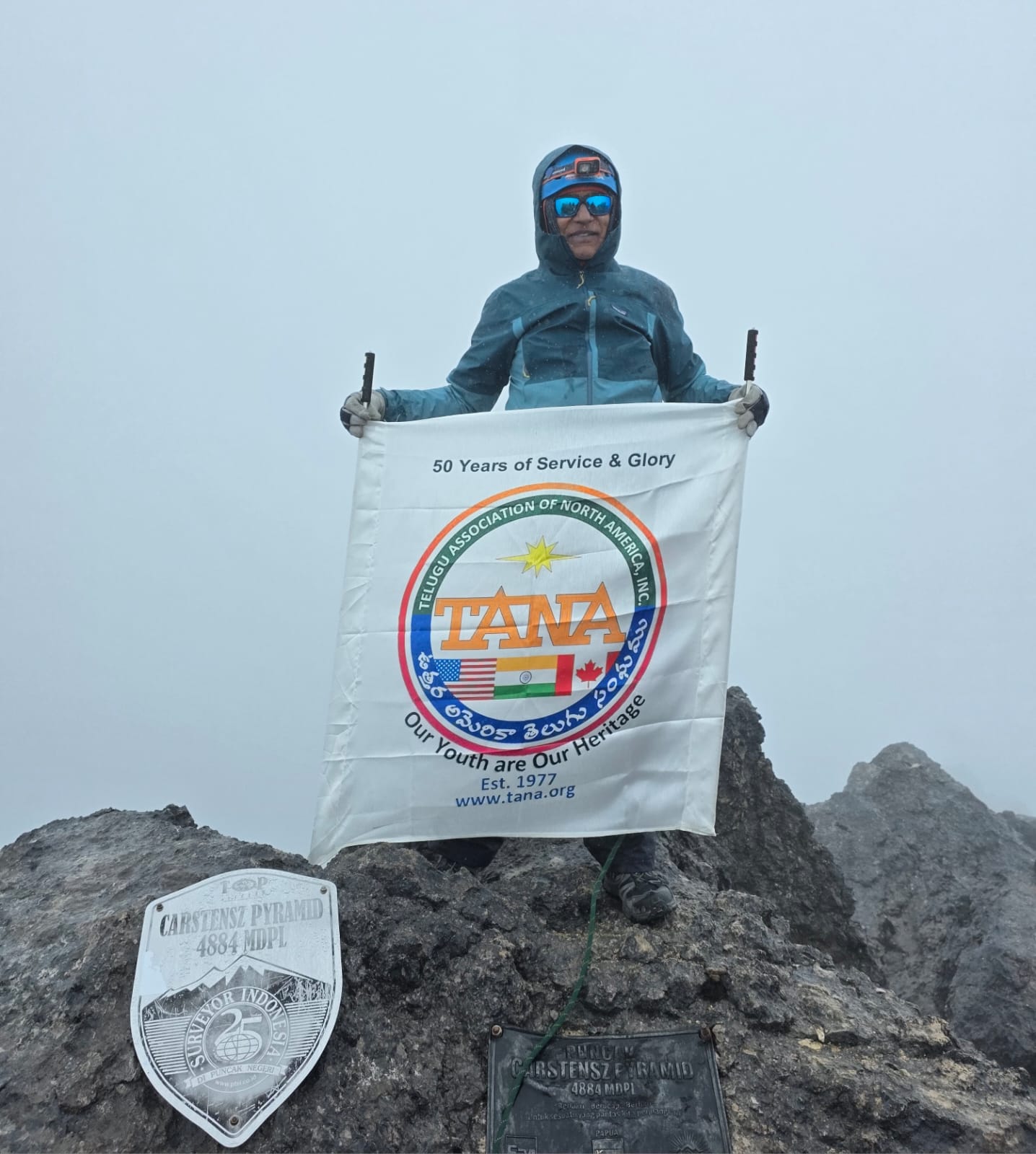 ఉత్తర అమెరికా తెలుగు సంఘం (TANA) బోర్డు అఫ్ డైరెక్టర్ డా. నాగేంద్ర శ్రీనివాస్ కొడాలి గారు ఇండోనేషియాలోని ఓషేనియాలో ఉన్న ప్రపంచంలో అత్యంత కఠినమైన సమ్మిట్లలో ఒకటైన కార్స్టెన్స్ పిరమిడ్ (Carstensz Pyramid) ను విజయవంతంగా అధిరోహించారు.