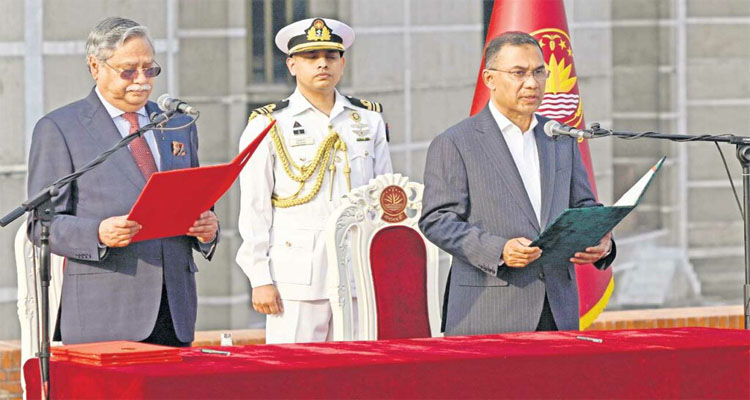 బంగ్లాదేశ్ కొత్త ప్రధానిగా బంగ్లాదేశ్ నేషనలిస్టు పార్టీ(బీఎన్పీ) అధినేత తారిఖ్ రహ్మాన్ ప్రమాణం చేశారు. దశాబ్దాల పాటు షేక్ హసీనా, ఖలేదా జియాల ఆధిపత్యంలో బంగ్లాదేశ్ రాజకీయాలు సాగగా మొదటిసారి ఎన్నికల్లో ఓ కొత్త వ్యక్తి పోటీచేసి ప్రధానిగా ప్రమాణం చేయడం చారిత్రక ప్రాధాన్యతను సంతరించుకుంది. ఖలీదా జియా కుమారుడైన తారిఖ్ రహ్మాన్ 17 ఏండ్ల ప్రవాస జీవితాన్ని ముగించుకుని గత ఏడాది డిసెంబర్లో బంగ్లాదేశ్కు తిరిగిరావడమే గాక తన తల్లి మరణానంతరం పార్టీ అధ్యక్ష బాధ్యతలు చేపట్టి ఎన్నికల్లో పార్టీని విజయ తీరానికి చేర్చారు.