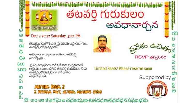 డిసెంబరు 3న ఆస్ట్రేలియాలో తటవర్తి గురుకులం అవధానార్చన