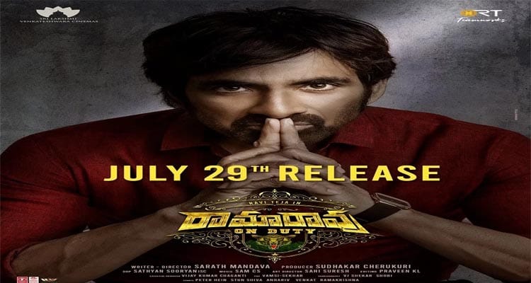 రవితేజ హీరోగా నటిస్తున్న చిత్రం రామారావు ఆన్‌ డ్యూటీ. రజిషా విజయన్‌, దివ్యాంక కౌశిక్‌ నాయికలుగా నటిస్తున్నారు. శరత్‌ మండవ దర్శకుడు. నటుడు వేణు తొట్టెంపూడి, నాజర్‌ కీలక పాత్రలు పోషించారు. నిర్మాత సుధాకర్‌ చెరుకూరి మాట్లాడుతూ యాక్షన్‌, థ్రిల్లింగ్‌ ఎలిమెంట్స్‌తో సినిమా ఆకట్టుకుంటుంది. రవితేజ సినిమా నుంచి కోరుకునే కమర్షియల్‌ అంశాలన్నీ ఉంటాయి అన్నారు. ఇందులో రవితేజ శక్తిమంతమైన ప్రభుత్వ అధికారి పాత్రలో కనిపించనున్నారు. శ్రీలక్ష్మి వెంకటేశ్వర సినిమాస్‌ ఎల్‌ఎల్‌పీ, ఆర్టీ టీమ్‌ వర్క్స్‌ పతాకాలపై సుధాకర్‌ చెరుకూరి నిర్మిస్తున్నారు. ప్రస్తుతం పోస్ట్‌ ప్రొడక్షన్‌ కార్యక్రమాలు జరుపుకొంటున్న ఈ చిత్రాన్ని జూలై 29న విడుదల చేయబోతున్నట్లు చిత్ర బృందం వెల్లడిరచింది. ఈ సినిమాకి సంగీతం: సామ్‌ సి.ఎస్‌,  కూర్పు: ప్రవీణ్‌ కేఎల్‌, ఛాయాగ్రహణం: సత్యన్‌ సూర్యన్‌.