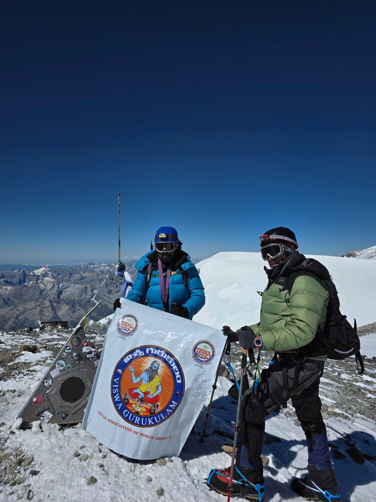 రష్యాలోని ఎల్బ్రస్ శిఖరం పైన తానా విశ్వ గురుకులం పతాకం