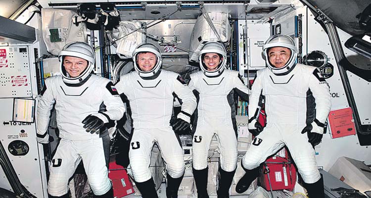 భూ కక్ష్యలోని అంతర్జాతీయ అంతరిక్ష కేంద్రం (ఐఎస్ఎస్)లో ఆరు నెలలకు పైగా విధులు నిర్వహించిన నలుగురు వ్యోమగాములు సురక్షితంగా భూమికి తిరిగొచ్చారు. స్సేస్ఎక్స్ డ్రాగన్ క్యాఫ్సుల్ ద్వారా ఫ్లోరిడా తీరం సమీపంలోని గల్ఫ్ ఆఫ్ మెక్సికో జలాల్లో వీరు కిందకు దిగారు. అప్పటికే అక్కడ సిద్ధంగా ఉన్న నేవీ, నాసా సిబ్బంది ఈ క్యాఫ్సుల్ను వెలికితీసి, సురక్షితంగా నౌకపైకి చేర్చారు. అనంతరం అందులోని వ్యోమగా ములు జాస్మిన్ మాగ్బెలి (అమెరికా), ఆండ్రియాస్ మోగెన్సెన్ ( డెన్మార్క్), సతోషి పురుకవా (జపాన్), కాన్స్తాంటిన్ బొరిసోవ్ ( రష్యా) వెలుపలికి వచ్చారు. వీరు గతేడాది ఆగస్టు 26న స్పేస్ఎక్స్ ఫాల్కన్ 9 రాకెట్లో రోదసిలోకి వెళ్లారు.