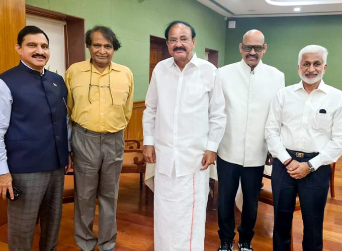 రాజ్యసభ సభ్యులుగా పదవీకాలం పూర్తి చేసుకున్న ఎంపీలు విజయసాయిరెడ్డి, సురేష్ ప్రభు, టీజీ వెంకటేశ్, సుజనా చౌదరి ఉపరాష్ట్రపతి వెంకయ్యనాయుడిని కలిశారు. ఉపరాష్ట్రపతి వారిసేవలను అభినందించారు