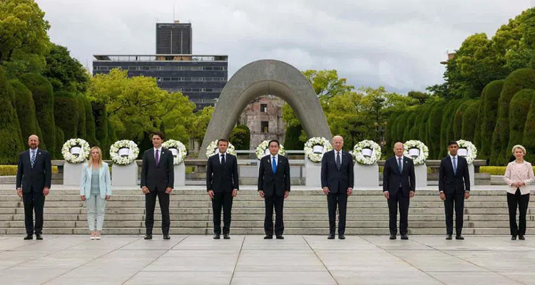 తూర్పు ఆసియా దేశమైన జపాన్లోని హిరోషిమా నగరంలో జీ -7 దేశాల శిఖరాగ్ర సమావేశాలు జరుగుతున్నాయి. ఇవాళ్టి నుంచి 21 మే వరకు మూడు రోజులపాటు ఈ సమావేశాలు జరుగనున్నాయి. జీ -7 సభ్య దేశాలైన కెనడా, ఫ్రాన్స్, జర్మనీ, ఇటలీ, జపాన్, యూకే, యూఎస్లకు చెందిన అధినేతలు ఈ సమావేశాలకు హాజరయ్యారు. జపాన్ ప్రధాని ఫుమియో కిషిడా ఆహ్వానం మేరకు భారత ప్రధాని నరేంద్రమోదీ కూడా ఈ జీ -7 దేశాల సమావేశాల కోసం హిరోషిమాకు వెళ్లారు. రెండో ప్రపంచ యుద్ధం సందర్భంగా అణుబాంబు దాడికి గురైన హిరోషిమాలోని హిరోషిమా పీస్ మెమోరియల్ పార్క్ దగ్గర వివిధ నేతలు పుష్పాంజలి ఘటించి నివాళులు అర్పించారు.