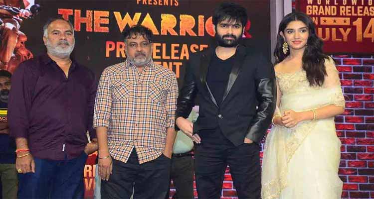రామ్ హీరోగా నటిస్తున్న సినిమా ది వారియర్. కృతి శెట్టి నాయకిగా నటిస్తున్నది. హైదరాబాద్లో ప్రీ రిలీజ్ కార్యక్రమాన్ని నిర్వహించారు. ఈ సందర్భంగా రామ్ మాట్లాడుతూ పోలీస్ సినిమాల్లో నటించడం కొన్ని రోజులు ఆపేద్దాం అనుకున్న సమయంలో లింగుస్వామి అలాంటి కథే తీసుకొచ్చారు. అయితే ఈ స్క్రిప్టు విన్న తర్వాత పోలీస్ కథలో నటిస్తే ఇలాంటి సినిమానే చేయాలి అనుకున్నాను. ఇందులో సత్య అనే పవర్ ఫుల్ పోలీస్ క్యారెక్టర్లో కనిపిస్తా. సత్య లాంటి పోలీస్ అధికారులు ఎంతోమంది డిపార్ట్మెంట్లో ఉన్నారు. వారిని స్ఫూర్తిగా తీసుకుని నటించాను. దర్శకుడు లింగుస్వామికి హ్యాట్సాప్ చెబుతున్నా అన్నారు. నాయిక కృతిశెట్టి మాట్లాడుతూ నిజం కోసం నిలబడే ప్రతి ఒక్కరూ వారియరే. మీరంతా జీవితంలో అలా నిలబడాలని కోరుకుంటున్నా. రామ్ మంచి సహా నటుడు. ఆయన ఎనర్జీ చూస్తే ఉస్తాద్ రాపో అని పిలుస్తుంటారని ఈ సినిమా చేశాక తెలిసింది అని చెప్పింది.