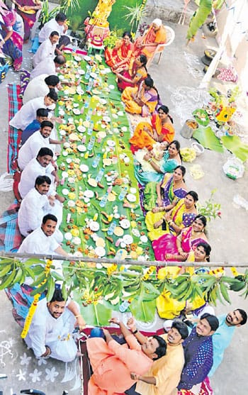 ఆంధ్రప్రదేశ్ రాష్ట్రంలోని తూర్పుగోదావరి జిల్లా చెముడు లంకకు చెందిన ప్రత్తి సత్యనారాయణ కొడుకులు, కోడళ్లు, కుమార్తెలు, వారి పిల్లలు, బంధువులు మొత్తం 30 మందిని ఒకే చోట కూర్చోబెట్టి అందరికీ ఒకే సారి అరిటాకుల్లో భోజనం పెట్టారు.