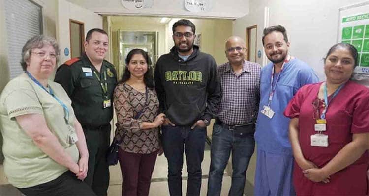కాగా, అతుల్ రావ్ ఊపిరితిత్తుల్లో రక్తం గడ్డకట్టడం వల్ల గుండె నుంచి రక్త ప్రవాహాన్ని అడ్డుకున్నట్లు వైద్య పరీక్షల్లో డాక్టర్లు నిర్దారించారు. పల్మనరీ ఎంబోలిజం అని పిలిచే ఈ పరిస్థితిలో అతడి గుండె ఆరు స్లార్లు ఆగినట్లు వైద్యులు తెలిపారు. ఈ నేపథ్యంలో ఆ ఆసుపత్రి డాక్టర్లు రాత్రంగా శ్రమించి అతడి ప్రాణాలు కాపాడారు. మరుసటి రోజున సెయింట్ థామస్ హాస్పిటల్కు తరలించి ఎక్మోపై చికిత్స అందించారు. కోలుకున్న తర్వాత అతడు అమెరికా వెళ్లిపోయాడు. ప్రస్తుతం టెక్సాస్లోని బేలర్ యూనివర్సిటీలో ప్రీ మెడికల్ డిగ్రీ చివరి ఏడాది చదువుతున్నాడు.అతుల్ రావ్ తాజాగా తన తల్లిదండ్రులతో కలిసి లండన్ వెళ్లాడు. ఈ సందర్భంగా తన ప్రాణాలు కాపాడిన వ్యక్తులు, ఆసుపత్రిని సందర్శించాడు. తల్లిదండ్రులతో కలిసి అక్కడి డాక్టర్లకు కృతజ్ఞతలు తెలిపాడు. పునర్జన్మ పొందిన తాను వైద్య విద్య పూర్తి చేసిన తర్వాత ఇతరులకు సహాయపడాలని నిర్ణయించుకున్నట్లు అతుల్ రావ్ వెల్లడించాడు.