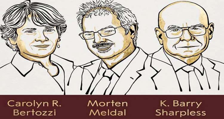 రసాయన శాస్త్రంలో విశేష పరిశోధనలు జరిపిన ముగ్గురు శాస్త్రవేత్తలకు ఈ ఏడాది నోబెల్ బహుమతి లభించింది. క్లిక్ కెమిస్ట్రీతోపాటు బయోఆర్థోగోనల్ కెమిస్ట్రీలను అభివృద్ధి చేసినందుకు గానూ శాస్త్రవేత్తలు కరోలిన్ ఆర్ బెర్టోజీ, మార్టెన్ మెల్డల్, కే బ్యారీ షార్ప్లెస్లను ఈ ఏడాది నోబెల్ పురస్కారానికి ఎంపిక చేసినట్లు రాయల్ స్వీడిష్ అకాడమీ ఆఫ్ సైన్సెస్ వెల్లడిరచింది. ఇప్పటివరకు వైద్య విభాగంతో పాటు భౌతిక, రసాయన శాస్త్రాలలో నోబెల్ బహుమతుల విజేతలను ప్రకటించారు. నోబెల్ బహుమతి గ్రహీతలకు 10 లక్షల స్వీడిష్ క్రోనర్ (సుమారు 9 లక్షల డాలర్లు) నగదు అందుతుంది. వీటిని ఈ ఏడాది డిసెంబర్ 10న అవార్డు గ్రహీతలకు అందజేస్తారు.