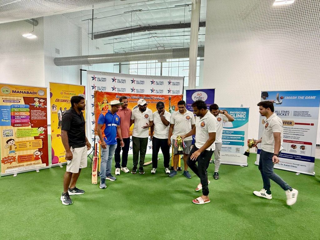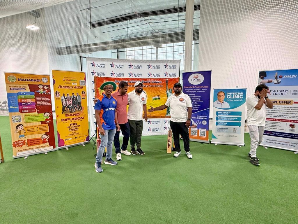 Telangana American Telugu Association (TTA) Dallas Chapter successfully hosted an exciting and well-organized box cricket tournament, drawing strong participation and appreciation from the community. The event was conducted under the dynamic leadership of TTA President Naveen Reddy Mallipeddi Garu, Praveen Chintha Garu (Development Director) and Viswa Kandi Garu (Seva Days Coordinator).