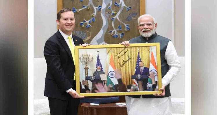 భారత ప్రధాన మంత్రి నరేంద్ర మోడీ తో అమెరికా రాయబారి సెర్గియో గోర్ భేటీ అయ్యారు. మోడీతో సెర్గో పలు ద్వైపాక్షిక అంశాలపై చర్చించారు. రక్షణ, వ్యాపారం, సాంకేతికత, ముఖ్యమైన లవణాలు వంటి వాటి గురించి ఇరువురు మంతనాలు జరిపారు. సందర్భంగా తమ అధ్యక్షుడు డొనాల్డ్ ట్రంప్ సంతకంతో కూడిన ఫొటోను మోడీకి సెర్గో అందజేశారు.అమెరికా రాయబారిని కలవడం పట్ల మోడీ సంతోషం వ్యక్తం చేశారు. భారత్లో అమెరికా రాయబారి సెర్గియో గోర్కు స్వాగతం పలకడం చాలా ఆనందంగా ఉంది. ఆయన హయాంలో భారత్, అమెరికా బంధం బలోపేతం అవుతుందని, ఇరుదేశాల మధ్య వ్యూహాత్మక సంబంధాలు మెరుగవుతాయని నాకునమ్మకం ఉంది అని మోడీ పేర్కొన్నారు.