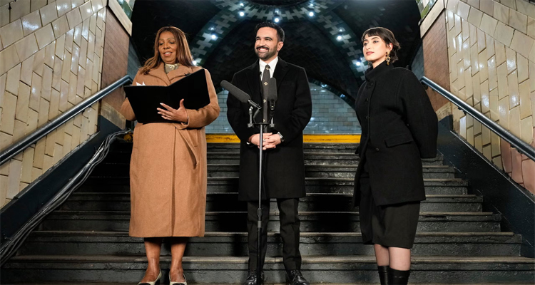 అమెరికాలోని న్యూయార్క్ సిటీ మేయర్గా జోహ్రాన్ మామ్దానీ ప్రమాణ స్వీకారం చేశారు. చరిత్రాత్మకమైన మన్హట్టన్ సబ్వే స్టేషన్ వద్ద ప్రమాణ స్వీకారం చేశారు. ఖురాన్ గ్రంధంపై చేయి వేసి ఆయన ప్రమాణం చేశారు. మేయర్గా ప్రమాణ స్వీకారం చేపట్టడాన్ని గౌరవంగా, జీవితకాల అవకాశంగా భావిస్తున్నట్లు మామ్దానీ తెలిపారు. న్యూయార్క్ అటార్నీ జనరల్ లెటిటా జేమ్స్ ప్రమాణం చేయించారు. న్యూయార్క్ సిటీకి తొలి ముస్లిం మేయర్గా మామ్దానీ నిలిచారు. ఓల్డ్ సిటీ హాల్ సబ్వే స్టేషన్ వద్ద ప్రమాణస్వీకార కార్యక్రమం జరగడం గమనార్హం. భారతీయ మూలాలు ఉన్న మామ్దానీ ఆఫ్రికాలో జన్మించారు. న్యూయార్క్ సిటీకి మేయర్గా అతిపిన్న వయస్కుడిగా రికార్డు క్రియేట్ చేశారు. మామ్దానీ వయసు 34 ఏళ్లు. ఫ్రీ చైల్డ్కేర్, ఫ్రీ బస్సులు లాంటి ఎన్నికల హామీలు చేశారాయన.